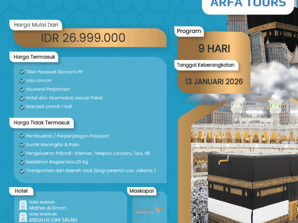 - Kenaikan tiket, hotel & Regulasi terbaru dari Pemerintah Indonesia & Pemerintah Saudi Arabia (apabila ada)