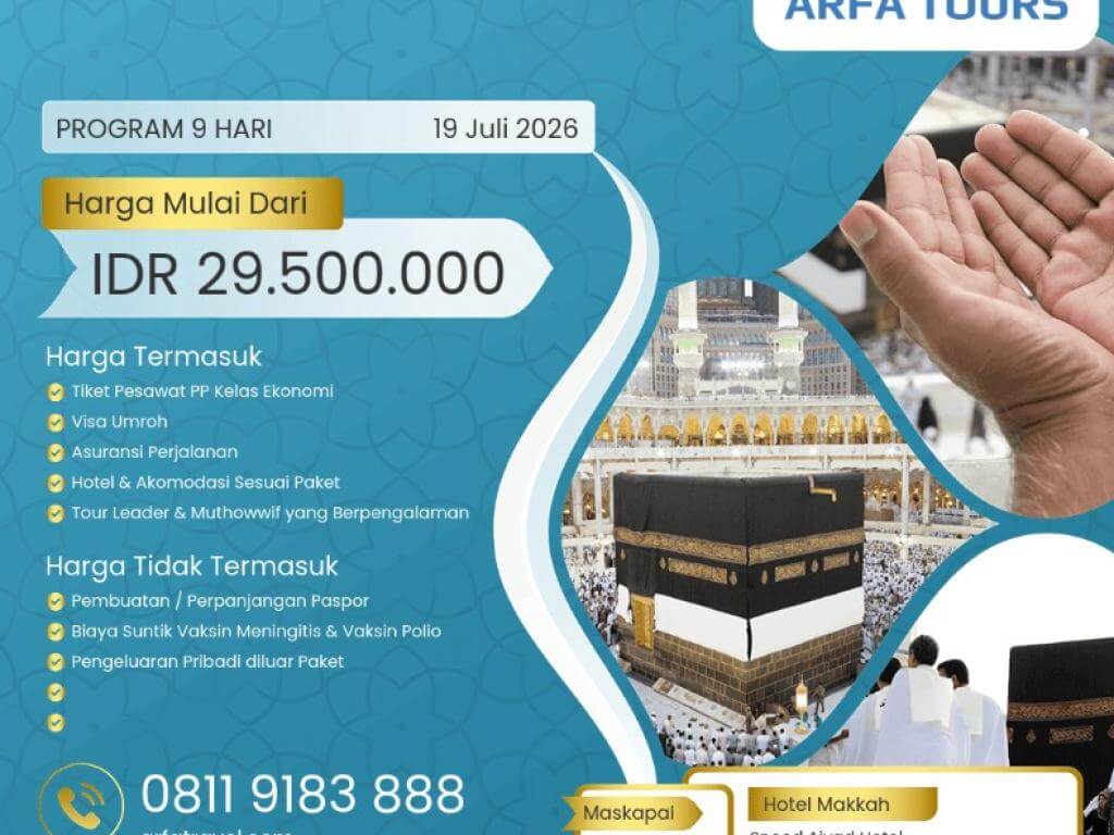 Harga dan Jadwal sewaktu-waku dapat berubah mengikuti ketentuan yang berlaku dari Airlines dan Arab Saudi (akan diinformasikan segera)
